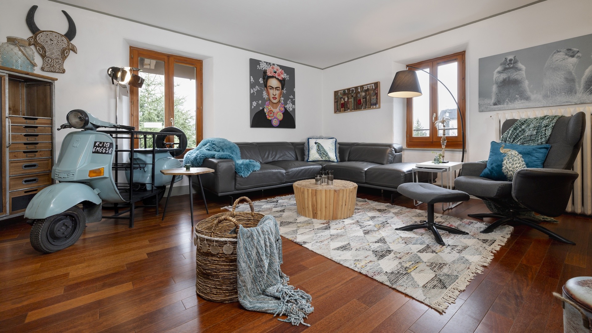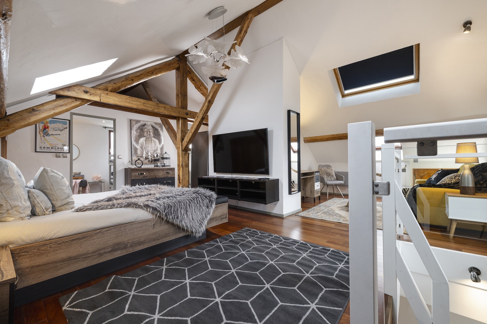Cet appartement est située au 2e et 3e étage d’une villa de montagne traditionnelle.