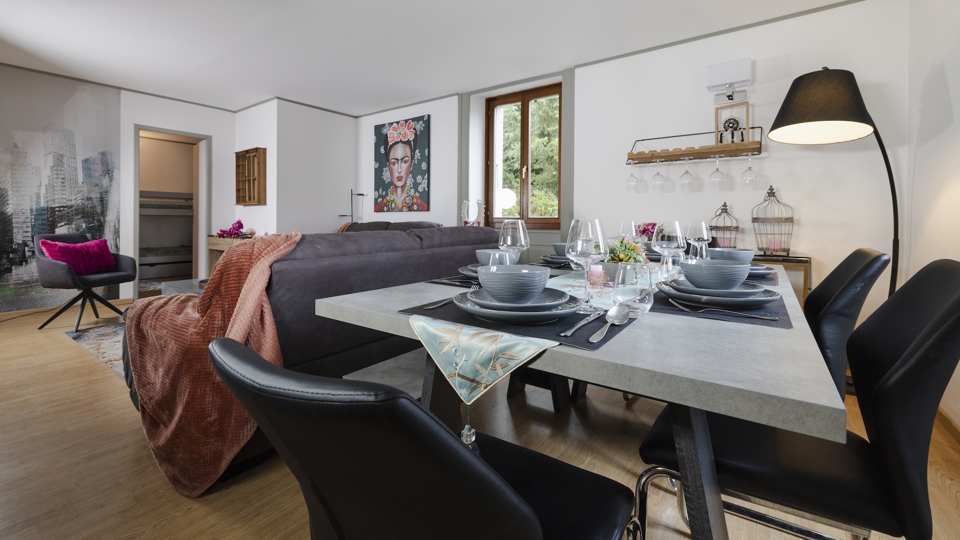 L’appartement de 4 pièces, d’une surface de 90 m², peut accueillir confortablement jusqu’à 6 personnes grâce à ses 2 chambres séparées.